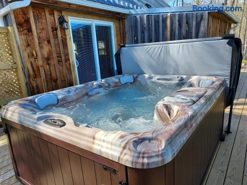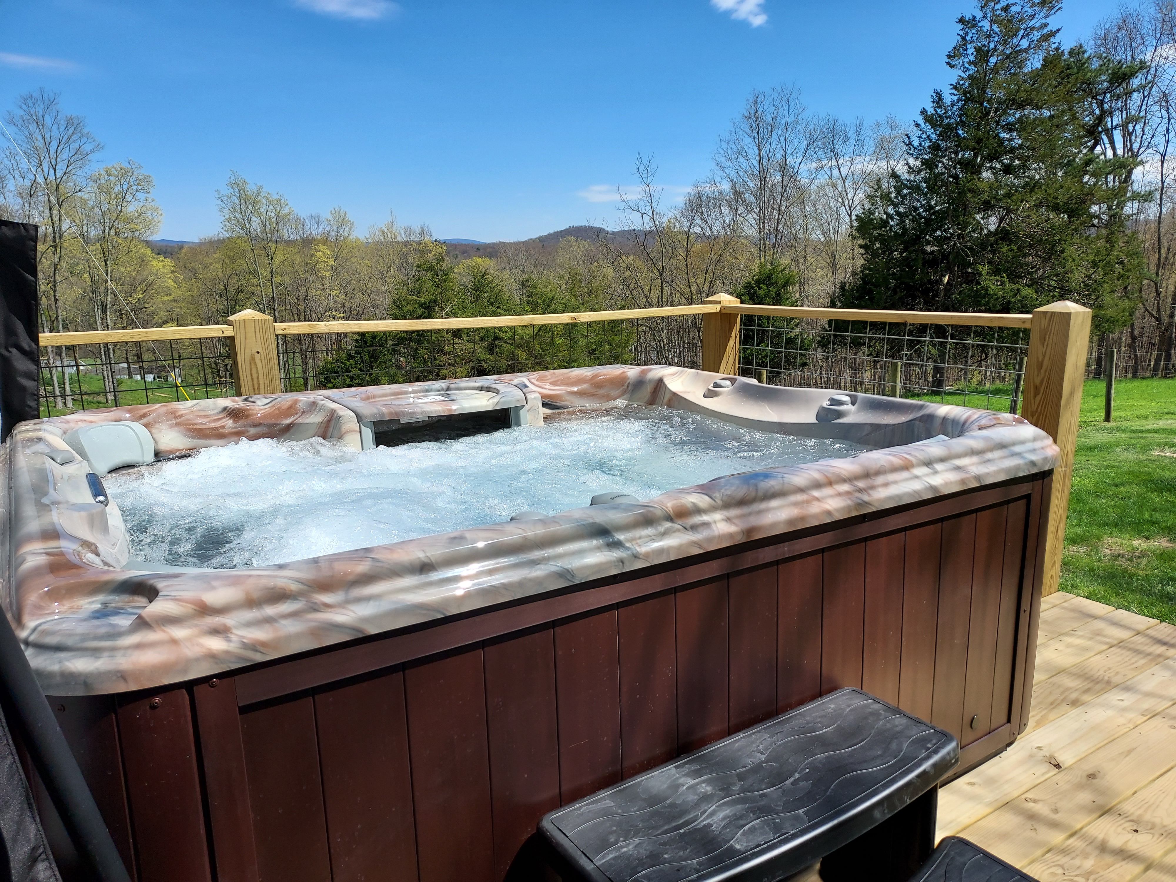 Disconnect, reset & recharge in this countryside cabin escape with hot tub & mountain views. ★ "Clean, stylish, private, and authentic cabin experience." ☞ Backyard w/ fire pit + wood ☞ Front porch w/ rocking chairs ☞ Patio w/ BBQ + outdoor dining ☞ Fully equipped + stocked kitchen ☞ Parking → driveway (4 cars) ☞ Books + board games ☞ La-Z-Boy loveseat ☞ 250 Mbps wifi 20 mins → DT Franklin (cafes, dining, shopping) 48 mins → Skidmore Lake