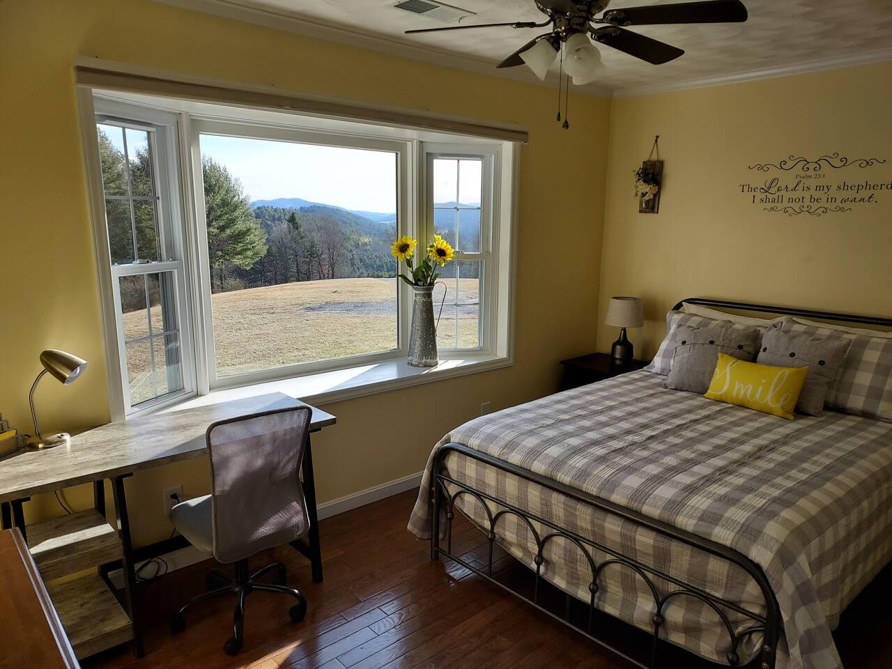 Click ‘Show Host Guidebook' below for my personal recommendations. Very secluded and set on a hilltop with beautiful views. To the south, the valley stretches out with an apple orchard in the foreground. To the west, Jack Mountain rolls across the distance, while to the north and east, farmland and mountain vistas complete the scene. The neighborhood is a quiet, sparsely populated farming community in the mountains, where people are friendly and helpful. The lane to the Manor is 0.7 miles long, gravel, and well maintained with snow removal. There is one short steep section.
